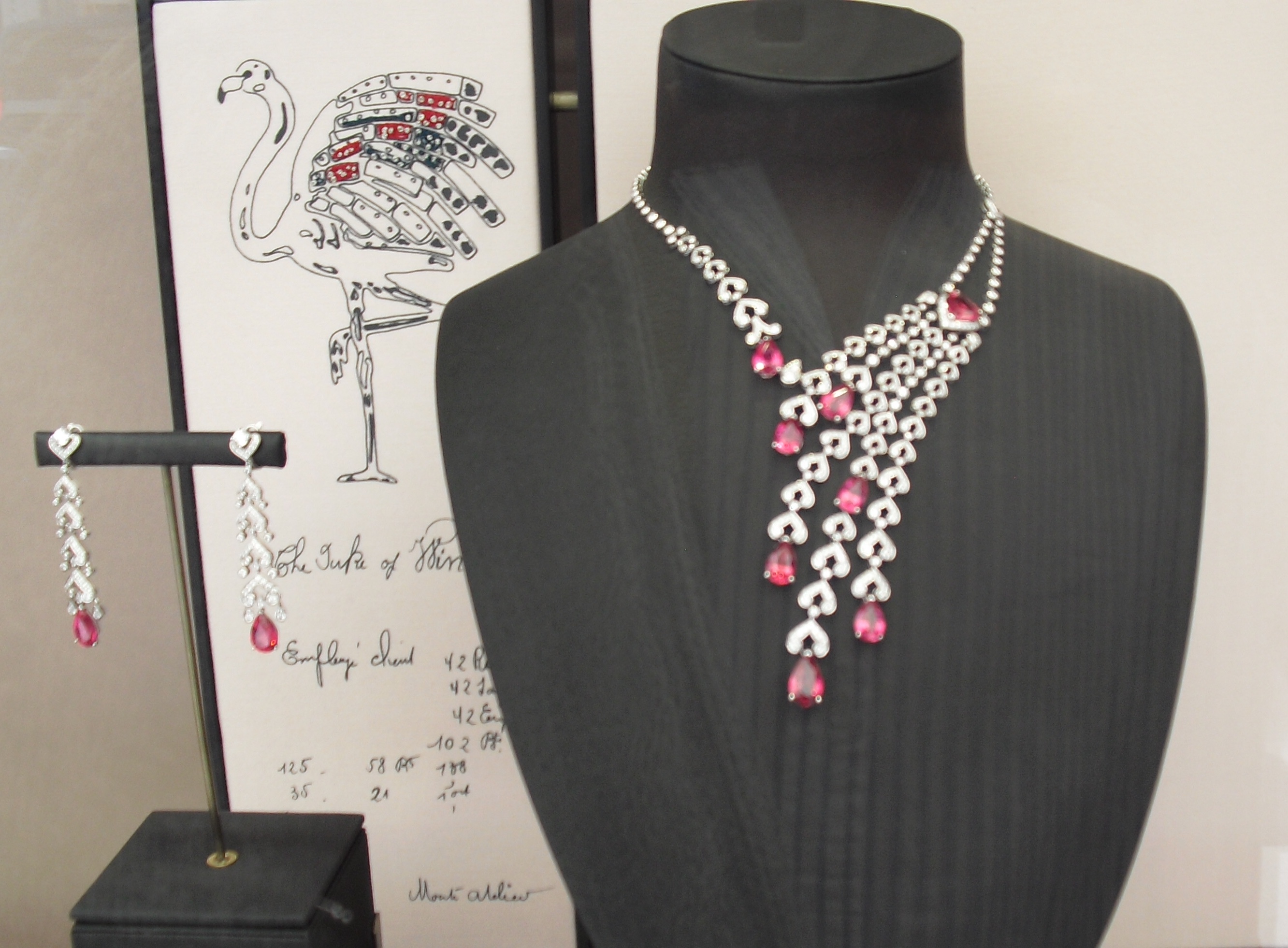 Below is a sample, the merest tidbit, of the glories to follow. Please note the design for Duchess of Windsor’s gorgeous flamingo pin in the background. She was one of the great fashionistas, perhaps of all time.