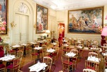 And, finally, what is billed as the “most beautiful tea room in Paris” (the dining room). The furniture here includes Louis XV consoles which are the serving tables, 18th Century tapestries of Achilles during the Trojan War, and a Tiepolo fresco on the ceiling. I think we should test this claim, visiting all of the tea rooms of Paris, especially Angelina’s, and draw our own conclusions, don’t you?